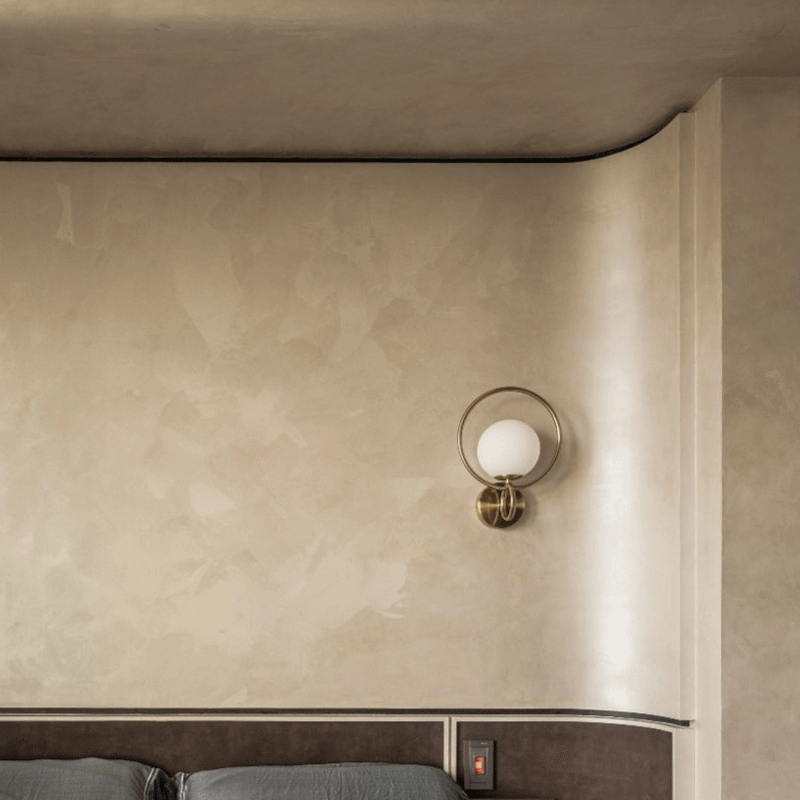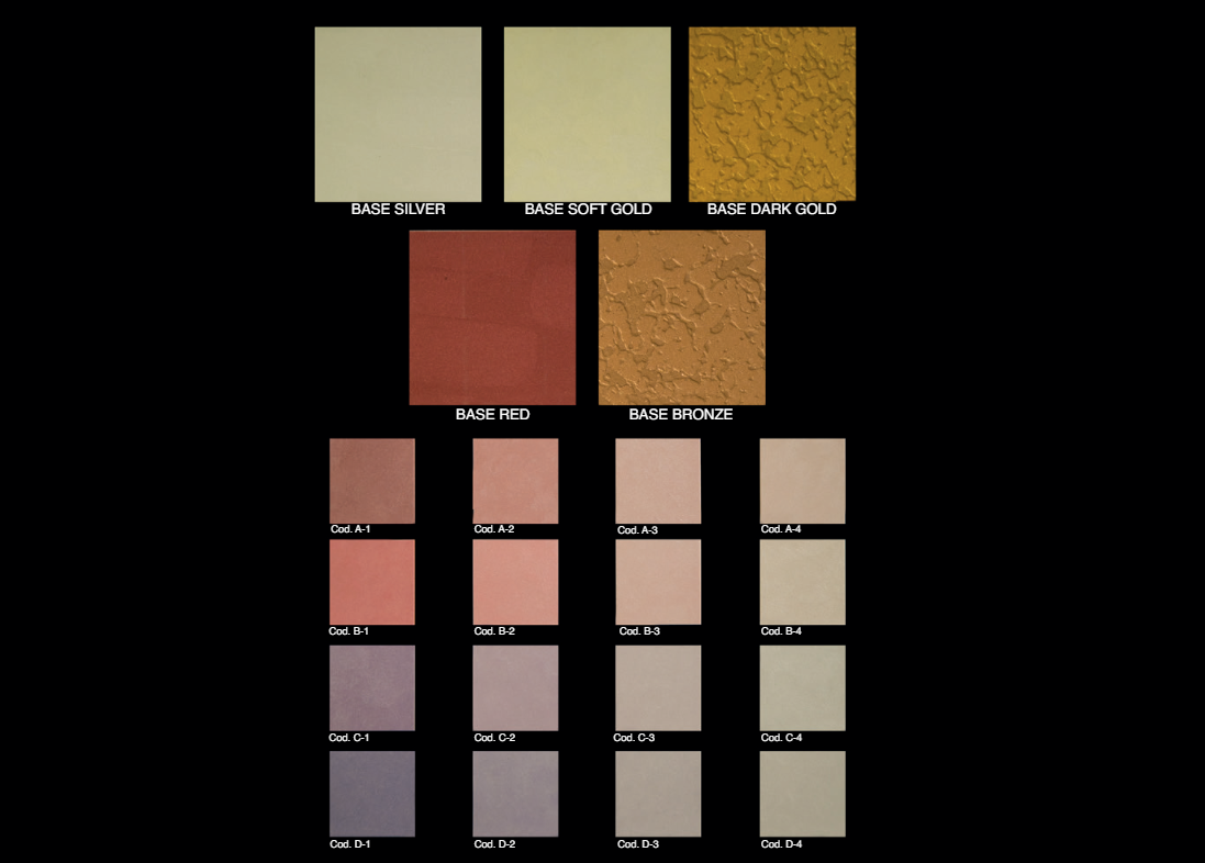 內 含 雲 母 礦 物 結 晶 呈 現 出 細 緻並 結 合 絲滑觸感及珍珠光彩 的牆面塗料。 運 用 手 法 施 作 方 向 , 製 造 陰 陽面 !