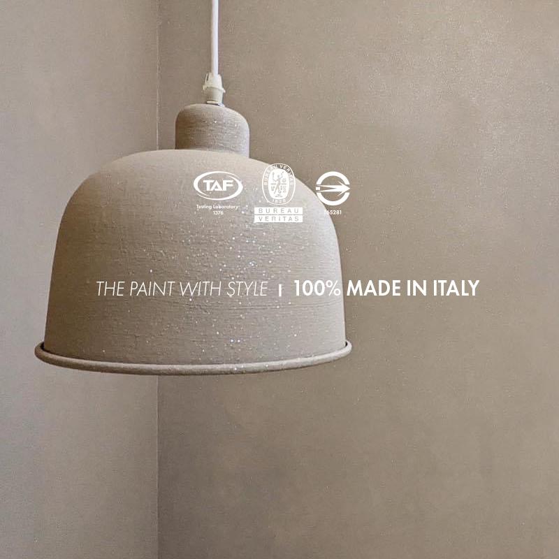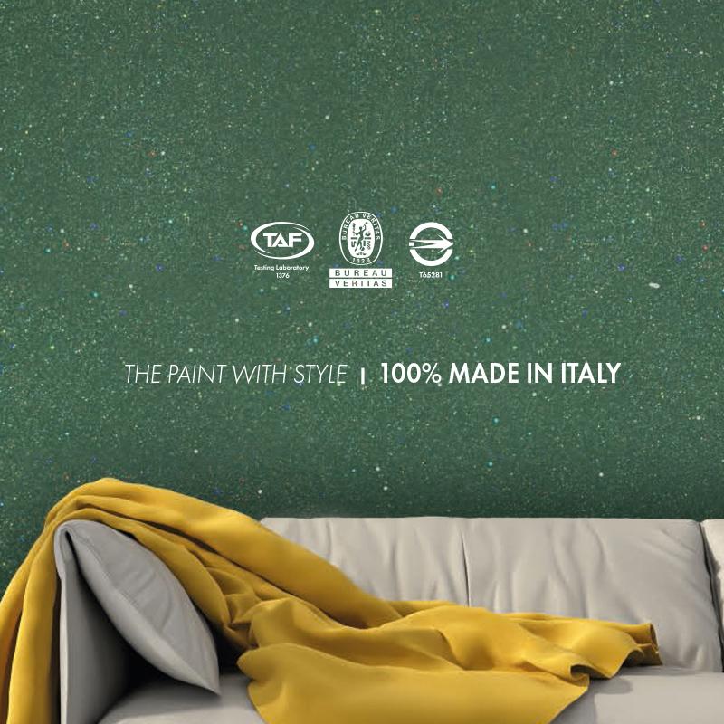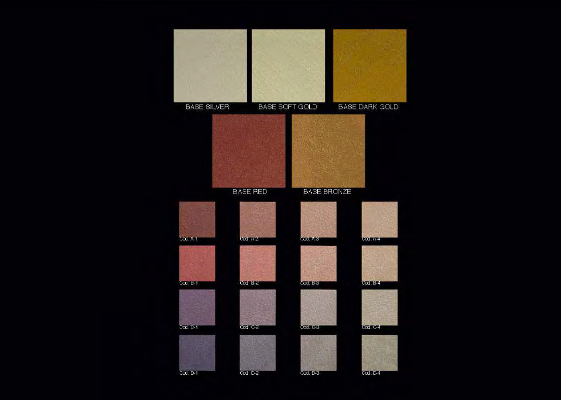 一款含陶瓷顆粒的裝飾塗料,包裹黃金與白銀混合物,創造出獨特的砂礫金屬質感。
